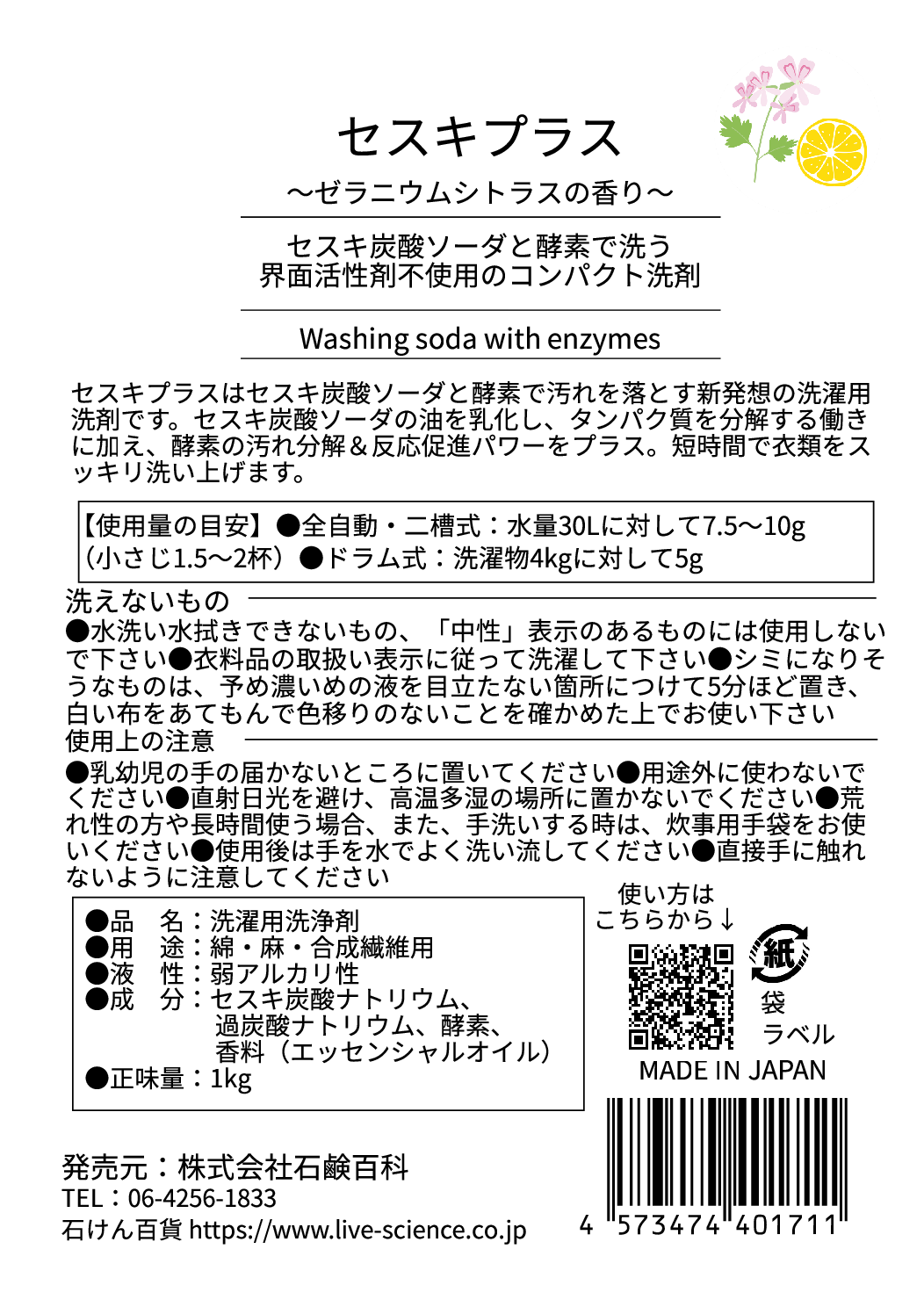【送料お得セット】セスキプラス ゼラニウムシトラスの香り 1kg (3袋セット)