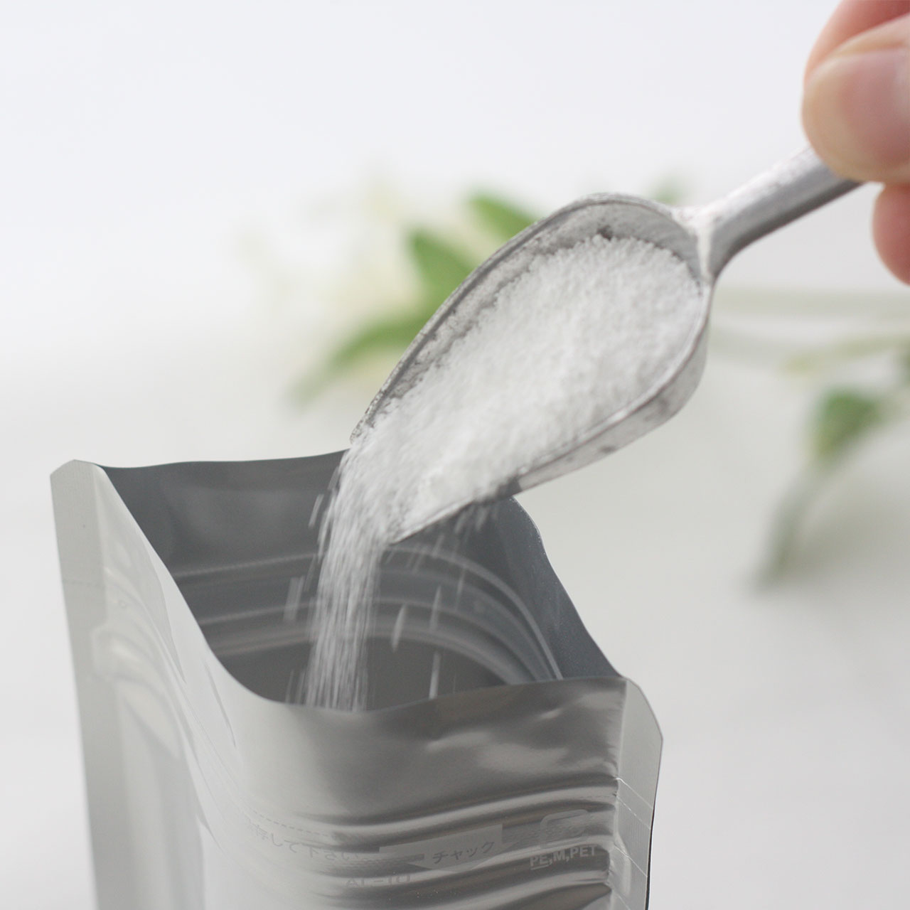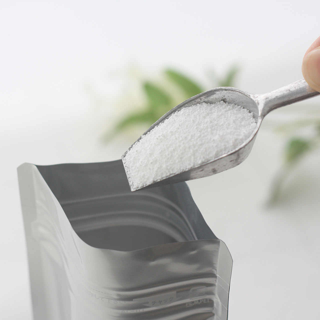 コップにぬるま湯を用意し、小さじ1杯程度を入れてお使いください。過炭酸ナトリウムから発生する過酸化水素が、入れ歯に付着した汚れや臭いをしっかり落とします。成分がシンプルなのですすぎも簡単。いつまでもヌル付いた感じがなく、気持ちよい洗い上がりです。