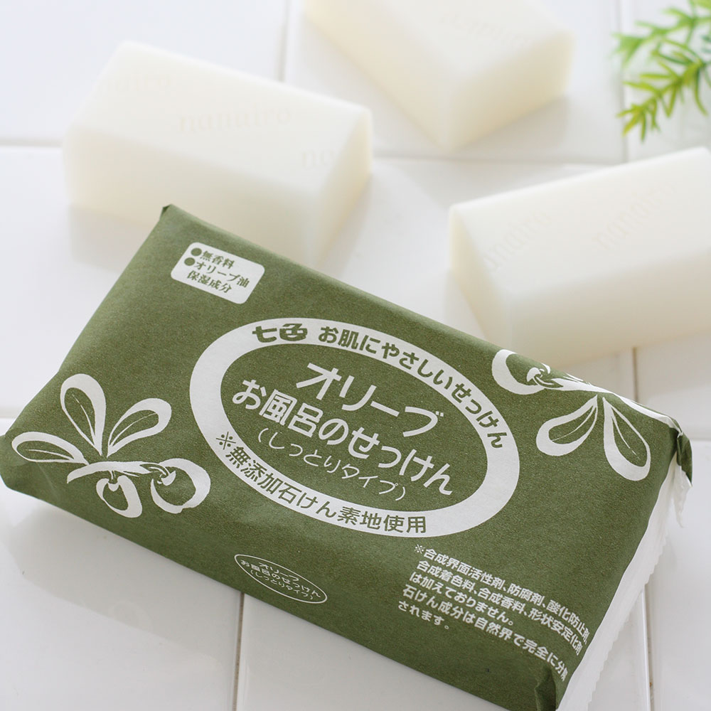 無添加石鹸にオリーブオイルを加えました。乾燥肌の方や乾燥しやすい時期もやさしく洗える、しっとりタイプの浴用石鹸です。