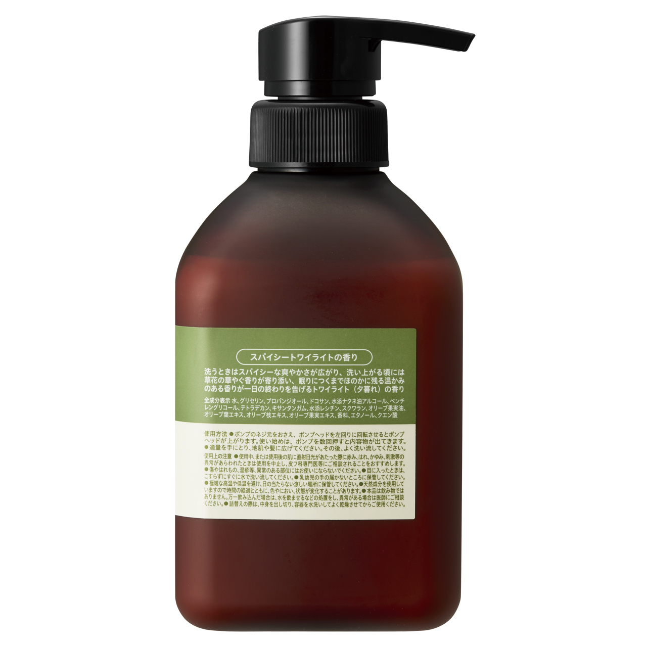 石けん専用ヘアコンディショナーです。石けんシャンプーですっきり洗浄した後の地肌や髪にうるおいヴェールをまとわせ、キシキシした感じを抑えてなめらかな指通りにします。スパイシートワイライトの香り。