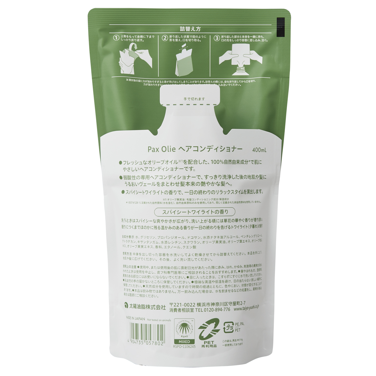 保湿・整肌成分としてオリーブの果実、葉、枝からとれるエキスを配合。オリーブ由来の『パックスオリー』が、美しい髪と健やかな地肌へと導きます。