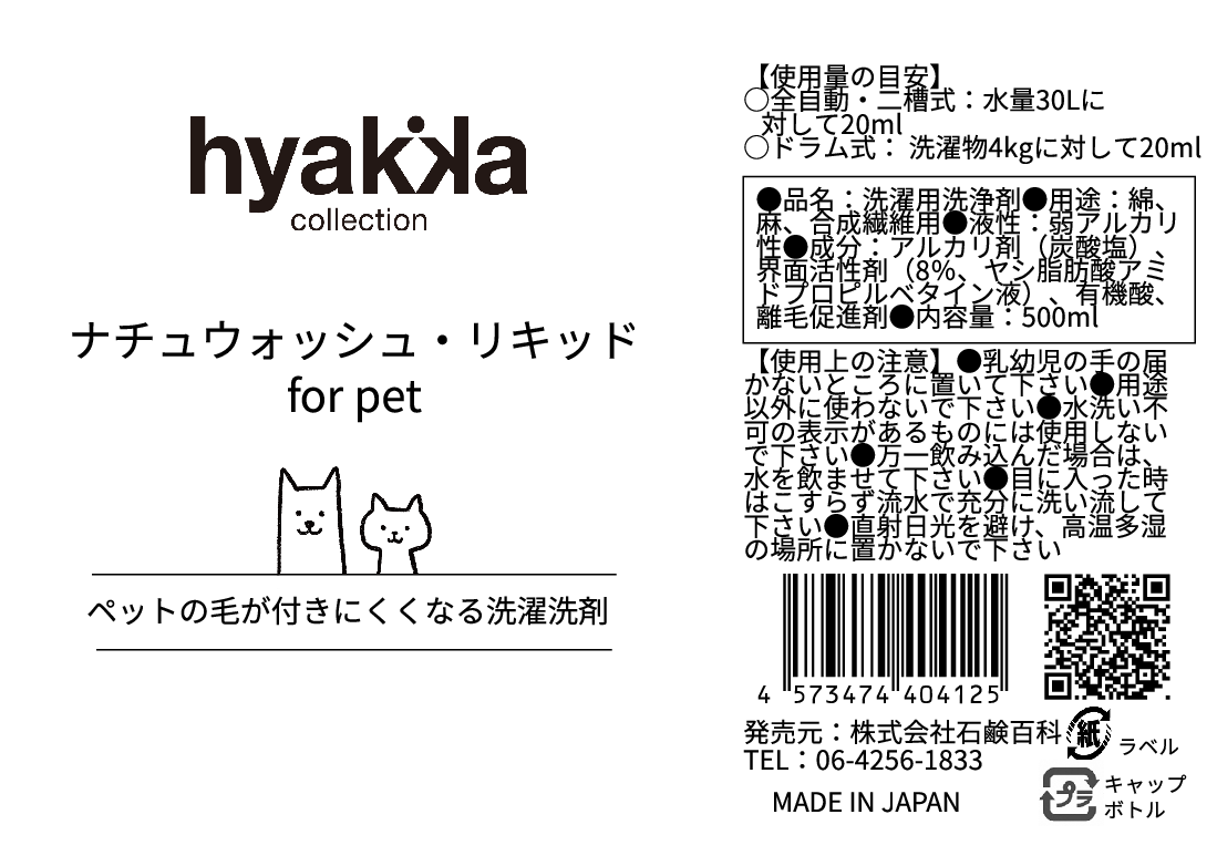 衣類について離れないペットの抜け毛が、お洗濯を繰り返すうちに、取れやすく、また付きにくくなる洗濯用洗剤です。「ナチュウォッシュ・リキッド」に離毛促進剤を配合し、抜け毛と衣類をやさしくコーティング。洗えば洗うほどに、抜け毛が付きにくくなります。