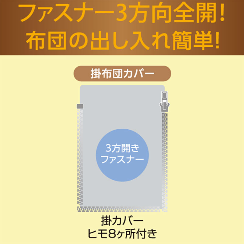 ファスナーが3方開きのため、出し入れがしやすく、ご家庭で洗濯(ネット使用)が出来ます。