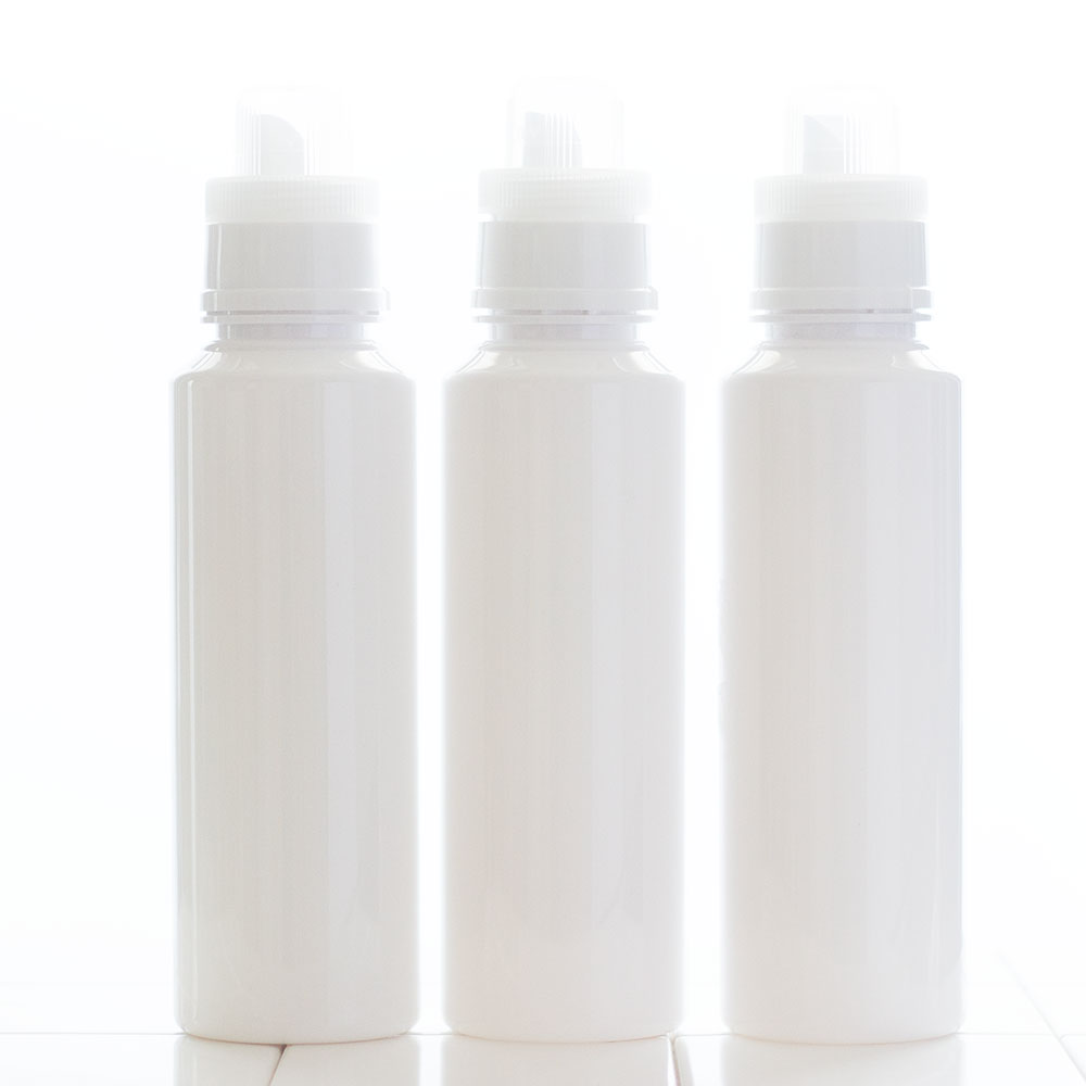 液体の洗剤や柔軟剤などに使える詰替えボトルです。500ml入ります。シンプルなデザインでランドリールームがスッキリとした印象に。