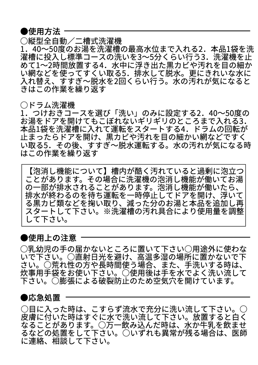 3種類の過炭酸ナトリウムが効く! 新配合の洗濯槽クリーナーです。縦型・ドラム式の両方にお使いいただけます。