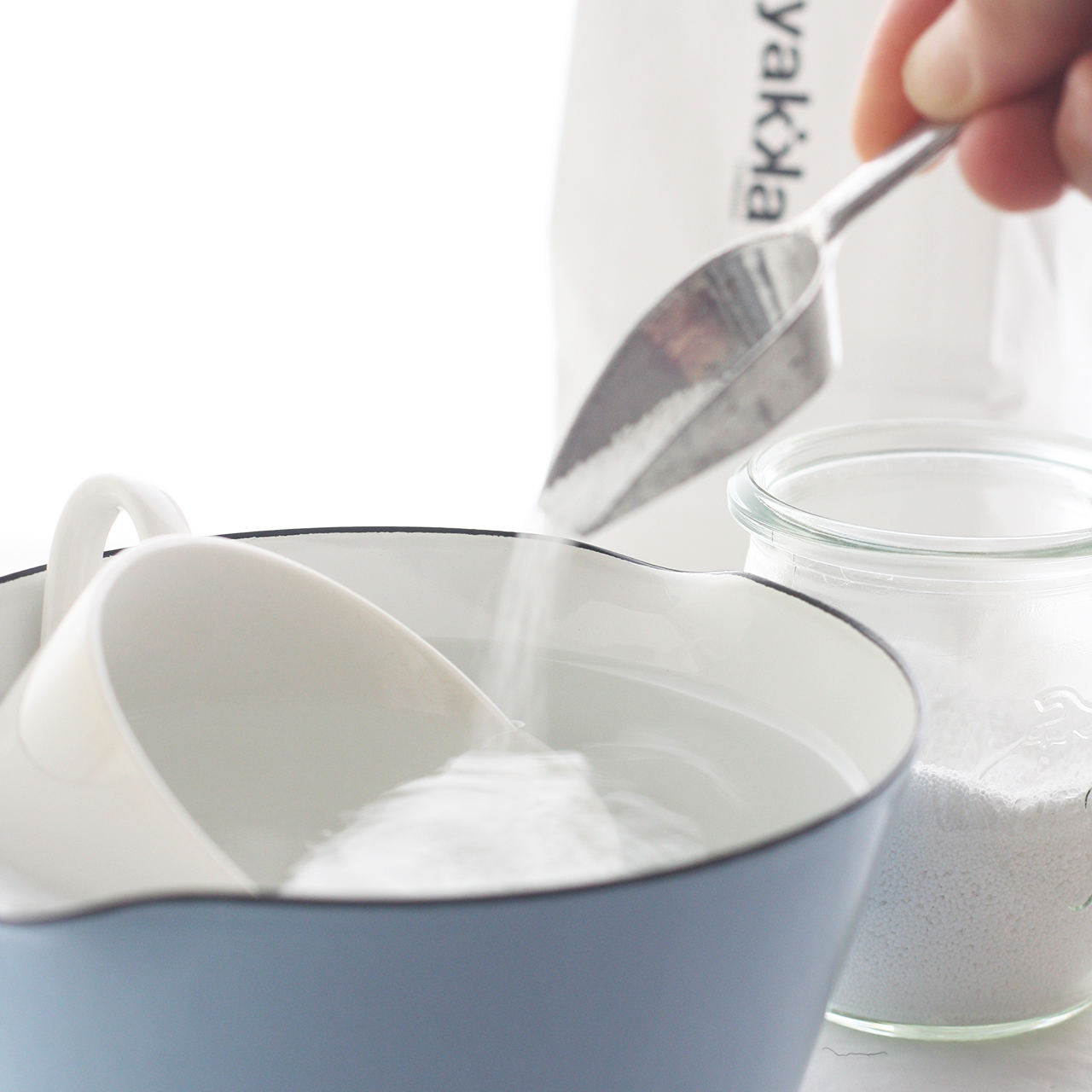 ・まな板やフキン、食器や調理器具などの殺菌漂白に。40℃以上のお湯2リットルに過炭酸ナトリウム大さじ1を溶かし、殺菌漂白したい物を1~2時間浸け込みます。茶渋落としにも効果大です。