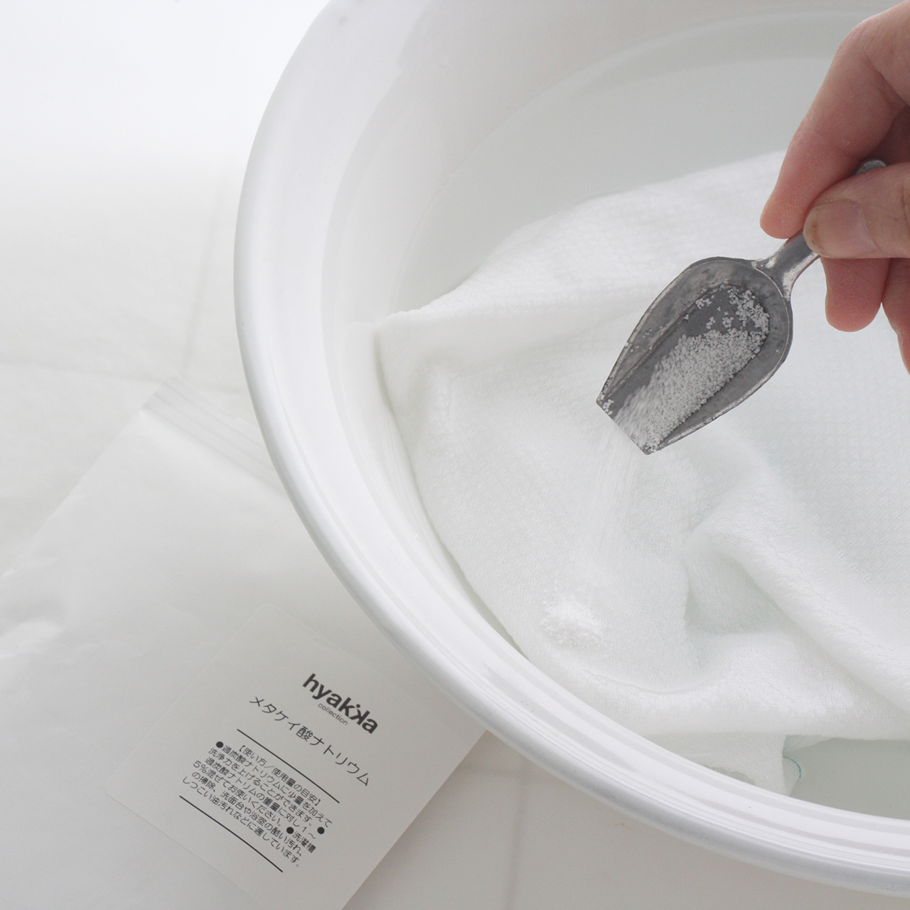 ほんの少し足すだけで過炭酸ナトリウムの反応を促し、殺菌漂白効果がぐーんとアップ。