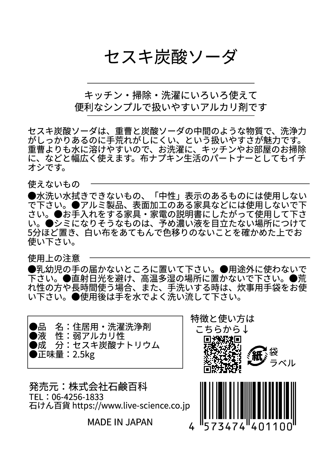 ※商品の詳細は「セスキ炭酸ソーダ 商品ページ」をご確認ください。