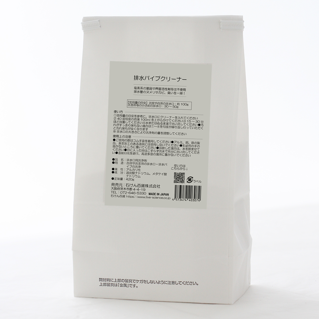排水パイプのヌメリやカビ、臭いを一掃!発泡性過炭酸ナトリウムの細かな泡がパイプ内に広がり、汚れを強力に分解します。