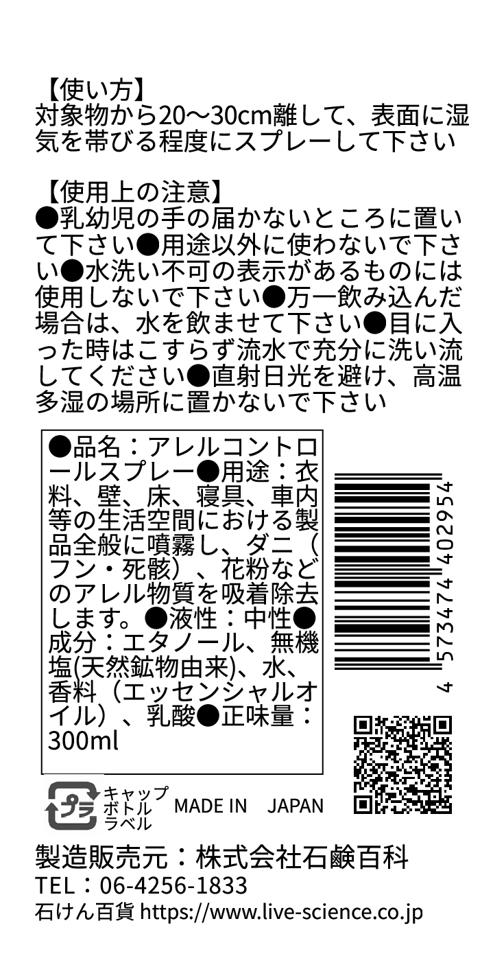 掃除や洗濯では完全に取り除くのが難しいアレルゲン。それなら、アレルゲンを安全な方法で不活性化し、アレルギーを引き起こさない様にすればよい。アレルコントロールスプレーはそんな発想から生まれた製品です。
