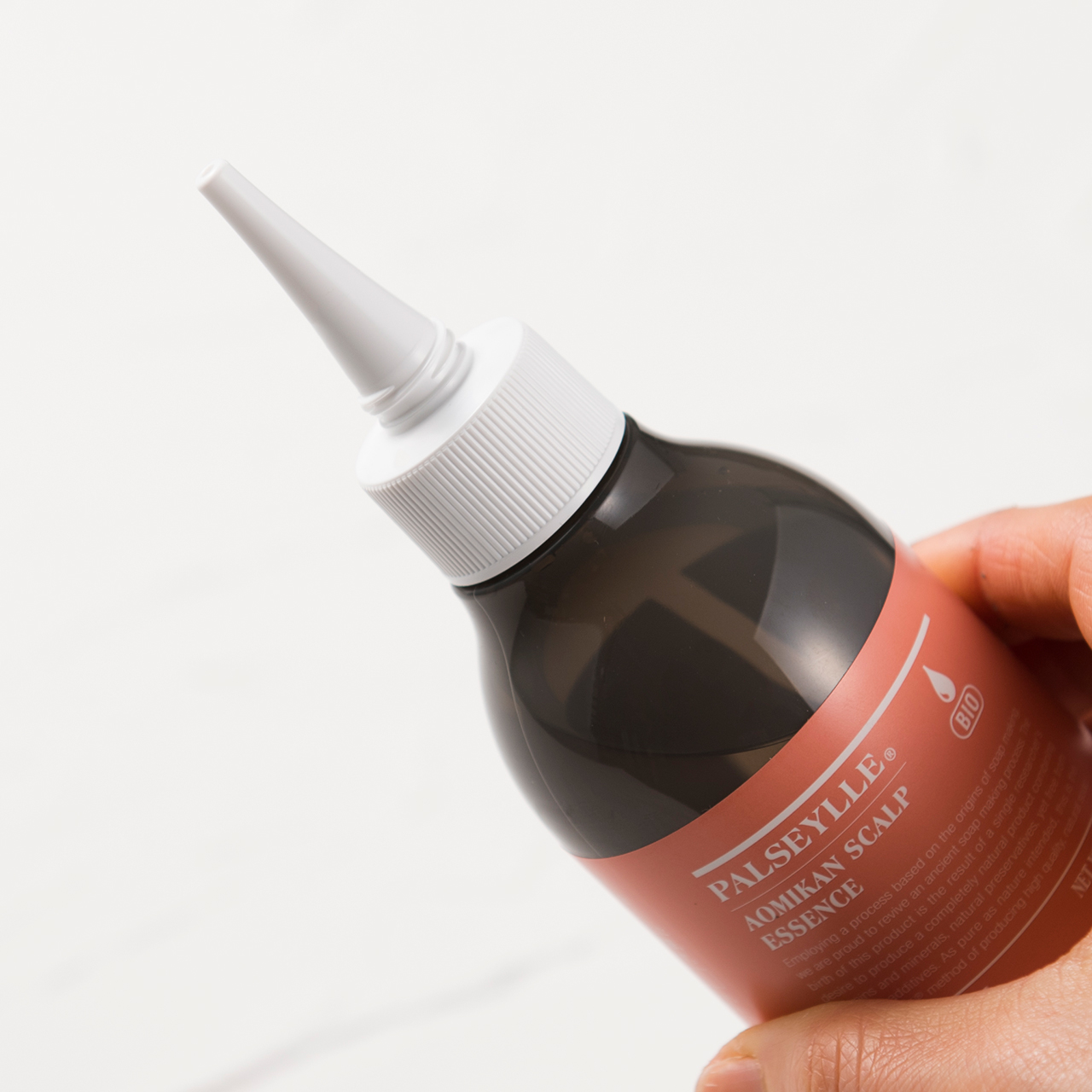 頭皮のための美容液です。パルセイユの自社工場で低温抽出した長崎県佐世保産の青みかん、福岡県芦屋産の赤紫蘇、橙、スギナ葉、めかぶなどの厳選素材を配合。頭皮の潤いとキメを整え頭髪にハリとコシを与えます。毎日の頭皮ケアにどうぞ。