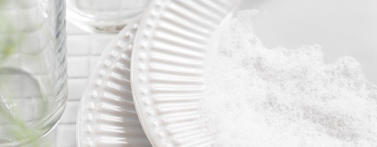 界面活性剤不使用の食洗機用洗浄剤です。過炭酸ナトリウムの油脂分解パワーで食器の汚れをすっきりと落とします。