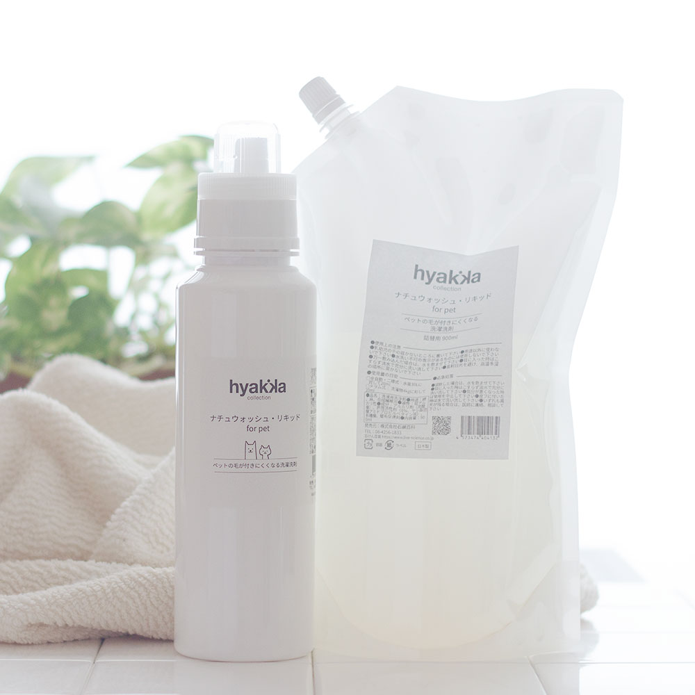衣類について離れないペットの抜け毛が、お洗濯を繰り返すうちに、取れやすく、また付きにくくなる洗濯用洗剤です。「ナチュウォッシュ・リキッド」の姉妹品です。