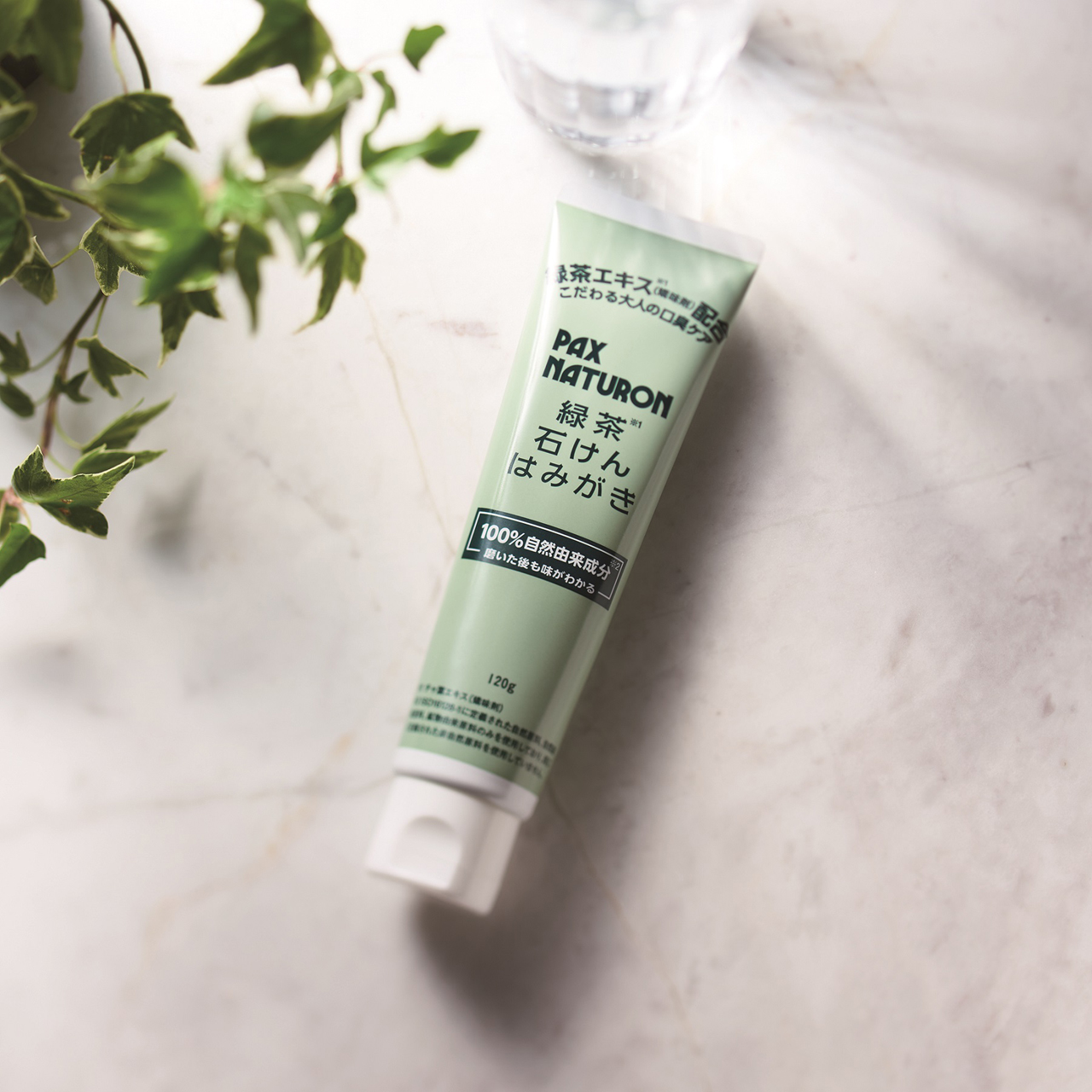 泡立ち控えめな石鹸歯磨き粉です。緑茶エキスがお口の臭いを抑え、甘草エキス・天然ビタミンEが歯周病を予防します。医薬部外品。