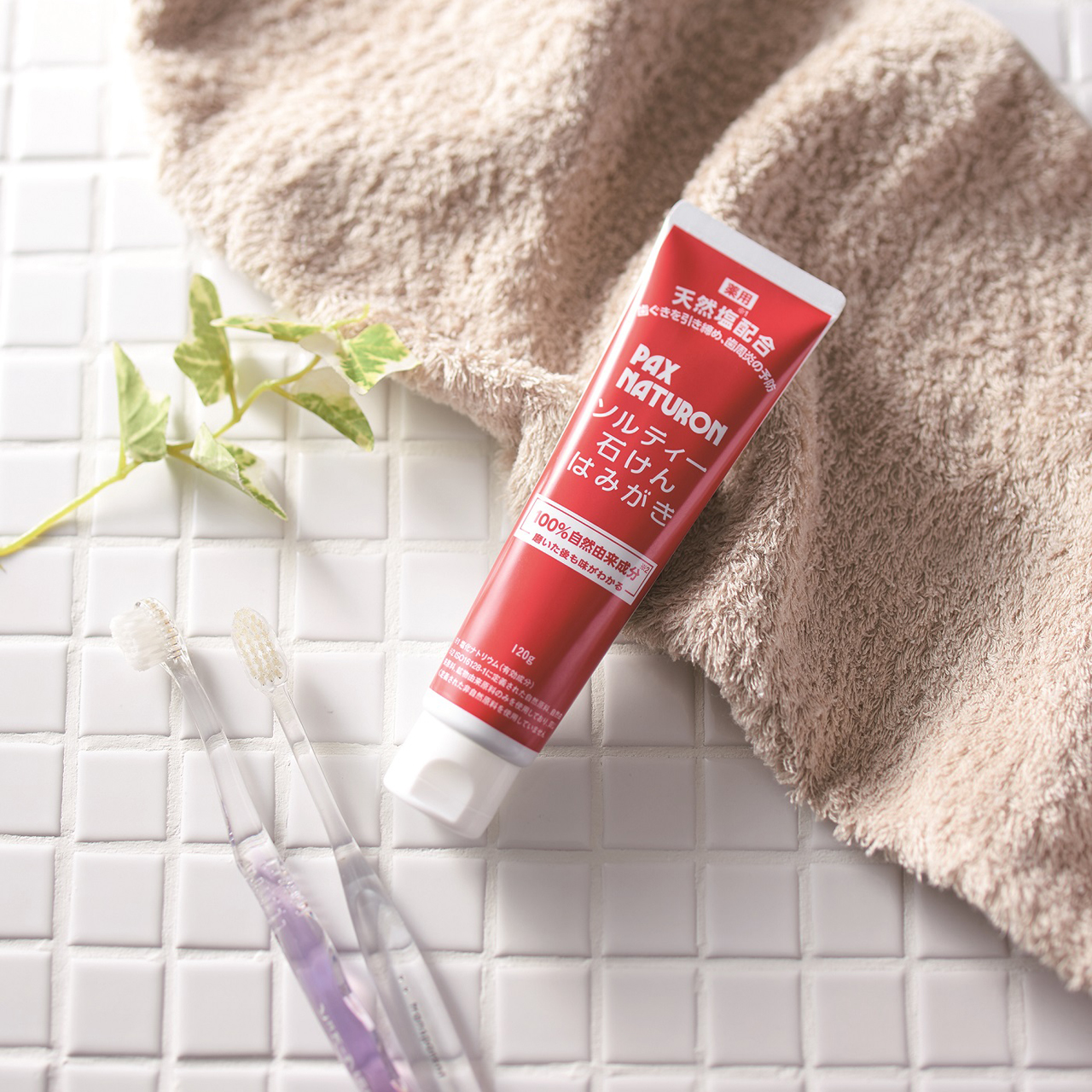 歯ぐきを引き締める塩入りの薬用歯磨き粉。ハッカとユーカリの涼やかな香り。医薬部外品。
